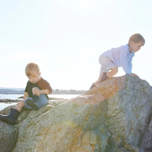 Viking gummistøvle til de mindste, med snørebånd foroven på skaftet. Gummistøvlen er fremstillet af holdbar naturgummi og har forstærket snude og hæl samt hurtigttørrende syntetisk for. En udtagelig indlægssål sørger for polstring og isolering, og sålen med det dybe mønster giver et godt greb på jorden – uden at lave mærker på gulvet. Refleksdetaljer sørger for, at børnene er synlige.