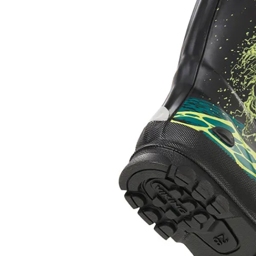 Rigtig fin gummistøvle med havmonster på overdelen. Gummistøvlen er i blødt naturgummi, har forstærkninger på hæl og tå samt reflekser bagpå.