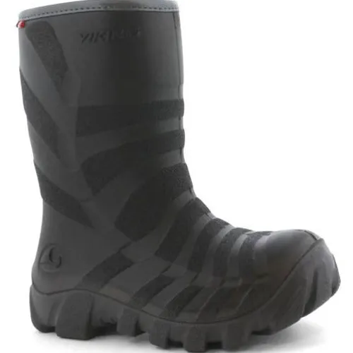 Flot, strømlinet vinterstøvle til børn, som er fremstillet af højteknologisk PU-materiale, der holder fødderne varme, uanset hvor koldt der er. Ultra er hurtig at få af og på og nem at gøre ren og er desuden fremstillet af fleksibel polyuretan kaldet Elastopan®, som er 100 procent pvc-frit, bionedbrydeligt og indeholder millioner af bittesmå luftbobler. Det gør materialet 40 procent lettere end pvc eller gummi og giver 2,5 gange mere isolering end normale PU-støvler. Kombineret med et varmt for i uldblanding holder Ultra fødderne varme ved ned til -20 °C. Vikings nordiske læst giver ekstra plads til tæerne og forbliver komfortabel hele dagen lang. Den tykke PU-sål giver et godt greb til denne unikke vinterstøvle, som er elsket af både børn og forældre.