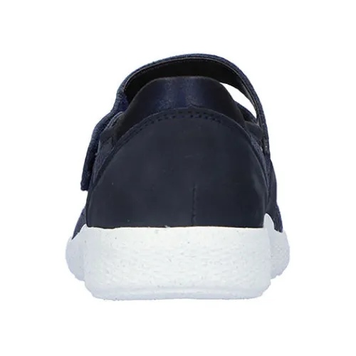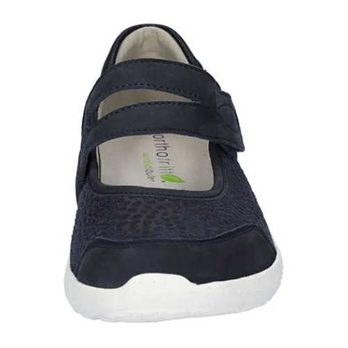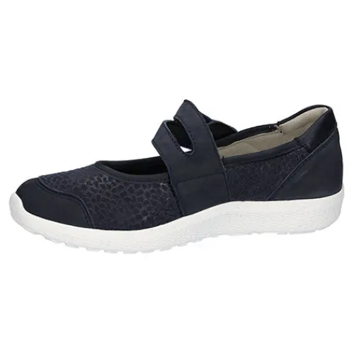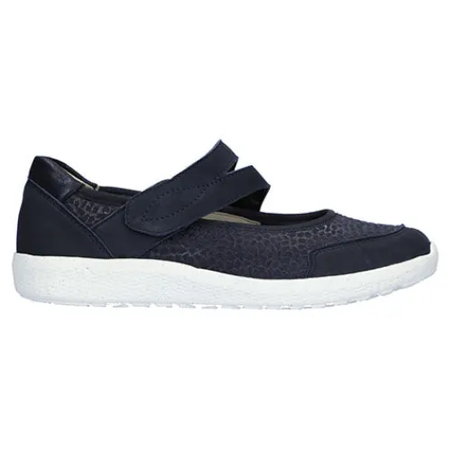 Denver Giraffestr. Bronx K-Ira fra Waldläufer er en feminin, let og luftig sko, som er blød og rummelig for dig med en bredere fod. Med vidde K er skoen nemlig bred, og med et elastisk materiale over forfoden er der plads til skavanker. Skoen er i Mary Jane-stil og har over vristen en bred rem, der lukkes med velcro, og er nem at komme i og ud af. Overdelen er skind og tekstil. Den bløde Orthotritt-indersål er udtagelig, og ydersålen er meget fleksibel.