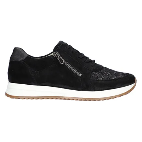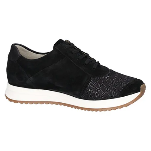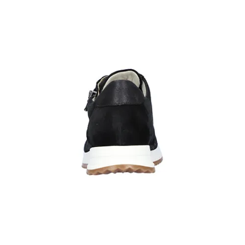 Lækker Vicky sneaker fra Waldläufer med god plads til foden. Overdelen er skind og elastisk tekstil, så skoen både er rummelig og tilpasser sig din fod. Skoen justeres med snørebånd og lukkes med en praktisk lynlås, der befinder sig på ydersiden. Den bløde Orthotritt indersål, som bl.a. har en pelotte, giver dig svangstøtte og komfort hele dagen.