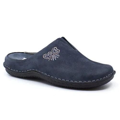 Komfortabel hjemmesko i nubuk fra Walk In The City. Hjemmeskoen har en fin applikation på overdelen. Hjemmeskoene er med skinddæksål og er foret med skind.
