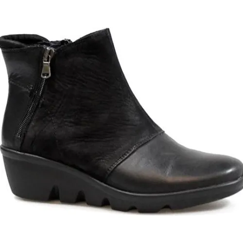 Kort støvle fra Walk in the City i et mix af glat skind og nubuk. Støvlen har lynlås i begge sider af skaftet og er foret med skind. Bløde og fleksible såler.