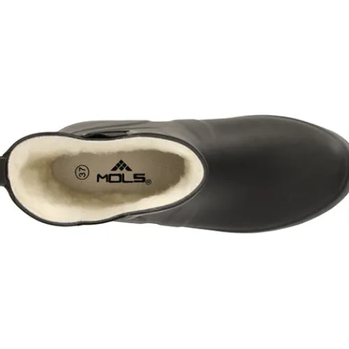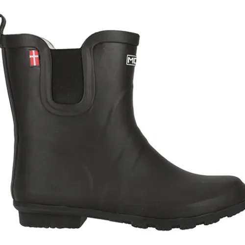 Blød og fleksibel Tara W Rubber Boot Warm gummistøvle med korte elastikpaneler på begge sider af åbningen. En trækfane bagpå gør det nemt at træde i støvlen. Indvendig sørger et varmt uldfoer for at holde dine fødder varme. Indersålen kan tages ud, og den stødabsorberende gummiydersål giver et fint fodfæste.