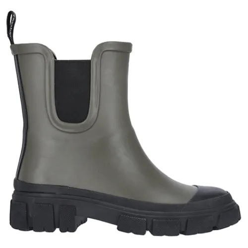 Gummistøvle med kraftig sål. Elastik i siderne. Modellen er stor i størrelsen.