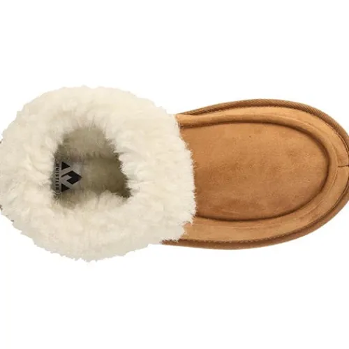 Hyggelig unisex Elian hjemmesko med en overdel af blødt mikrofiber-teddytekstil med moc toe-syning og en krave af varmt foer. Indvendig har hjemmeskoen en åndbar indersål i uld og et varmt foer, der bl.a. består af uld. Den fleksible gummiydersål giver et fint fodfæste.