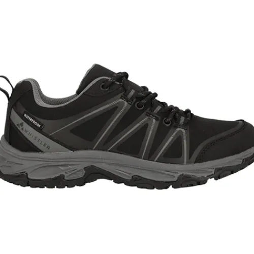 Flot og praktisk Whistler Naiyu Outdoor WP sko med en overdel af åndbart tekstil og slidstærke detaljer af syntet på bl.a. snude, hæl og pløs. Skoen lukkes med snørebånd, og en trækfane på hælen gør det nemt at træde i støvlen. Åbningen er polstret for øget komfort og støtte. Den komfortable indersål kan tages ud, og skoen er vandtæt med den indbyggede membran, så fødderne holdes tørre og lune. Den fleksible gummiydersål giver et godt fodfæste.