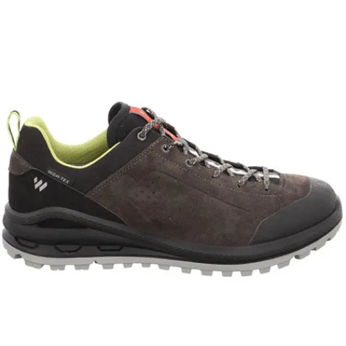 Lækker Rock Hiking unisex vandresko med en overdel af ruskind og tekstil, foret med tekstil og udstyret med en åndbar og vandtæt High-TEX-membran, så fødderne holdes tørre. Skoen lukkes med snørebånd, og en trækfane på hælen gør det nemt at træde i skoen. Åbningen er limegrøn indvendig og polstret for øget komfort og beskyttelse. Den udtagelige komfortindersål er støddæmpende, og den kraftige og slidstærke Antistatica-gummiydersål er stødabsorberende med et godt vejgreb. Her får du en vandtæt og robust vandresko, som er særligt behagelig off-road med et fast greb på selv de mest stenede stier. Fremstillet i Europa.
