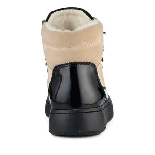 Iris Mix er fremstillet i et eksklusivt mix af ruskind, lak og ægte uldfoer. Alt skind og læder er fra LWG certificeret produktion. I indersålen finder du et blødt underlag i skummaterialet PU, som er både let og stødabsorberende, beklædt med det karakteristiske WODEN kork, som sikrer åndbarhed. Ydersålen er baseret på vores Natural Soft teknologi. En teknologi, der er udarbejdet for at sikre dig den bedste komfort. Sålen er desuden produceret af 65% naturgummi, 10% genbrugsgummi og 25% konventionelt produceret gummi. Iris kan medføre komplimenter.