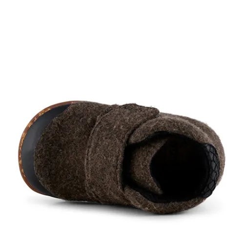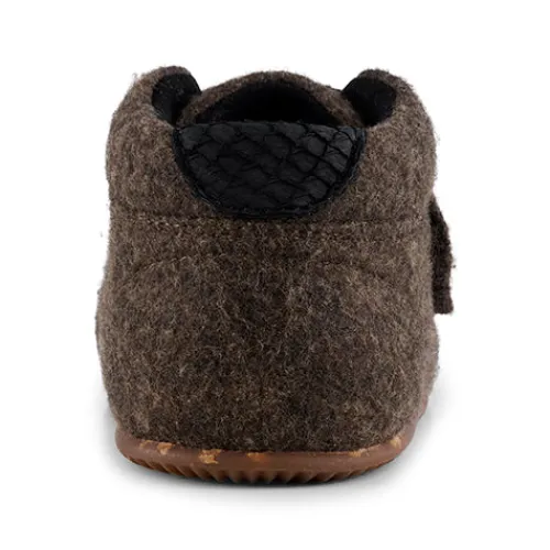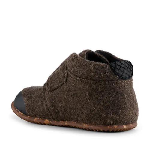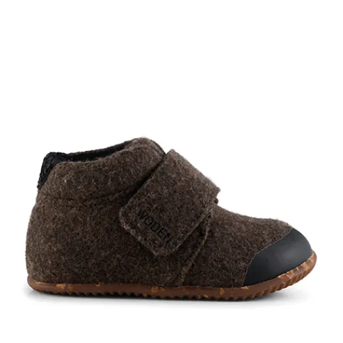 Babysko i fin beige melange med velcrolukning, der gør skoene lette at få af og på. De har en blød hælkappe og kombinationen af læder og filt sikrer et sundt og åndbart miljø for små fødder. Indersålen er blød og bestående af det karakteristiske WODEN-kork og stødabsorberende EVA-skum.