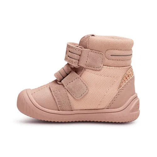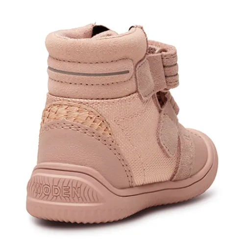 Tristan Boot ll er den optimale begynderbabystøvle. Den er bl.a. fremstillet af ruskind med detaljer af fiskeskind og er foret med genanvendte materialer. Støvlen har refleksdetaljer og lukkes med to velcroremme over vristen, som gør den let at få af og på, og åbningen er polstret for øget komfort. I indersålen, kan tages ud, finder du et blødt underlag i skummaterialet EVA, som er både let og stødabsorberende. Indersålen er beklædt med det karakteristiske WODEN kork, som sikrer åndbarhed. Wodens børnestyles er altid udstyret med et voksetillæg på indersålen, så du kan være sikker på dit barns korrekte størrelse. Ydersålen af gummi er fleksibel og giver et godt fodfæste.