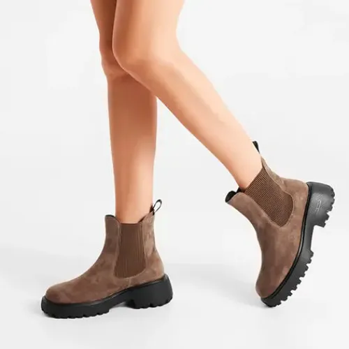 Lækker Shoe The Bear Aya S chelseastøvle med en overdel af ruskind med elastikpaneler på siderne af anklen, en fiskeskindsdetalje på hælen samt en trækfane af tekstil. Den udtagelige indersål er polstret, støddæmpende og komfortabel, og den chunky ydersål har et kraftigt mønster og er stødabsorberende med et godt vejgreb.