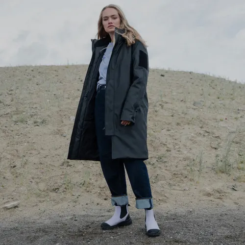Siri Warm Waterproof er en slidstærk og vandtæt gummistøvle lavet af 70 % naturgummi. Støvlen har et elegant design, og sammen med et varmt uldfoer holdes dine fødder tørre og varme hele dagen. Trækfane både for og bag gør det nemt at træde i støvlen, som desuden er lavet med 30 % genbrugsgummi med unikke fiskelæderdetaljer på hælen. Støvlens åndbarhed sikres ved brug af en WODEN airflow-indersål med kork, som kan tages ud, og en ydersål baseret på Natural Soft-teknologi designet til at sikre den bedst mulige komfort, hvilket gør Siri Warm Waterproof til en behagelig og vandtæt følgesvend på farten med et godt fodfæste. En markant track-sål fuldender støvlen for ekstra komfort.