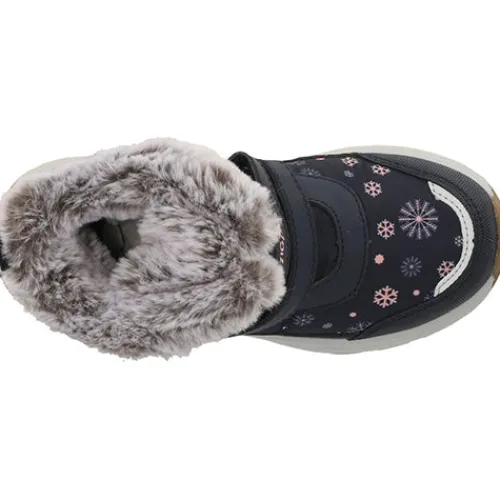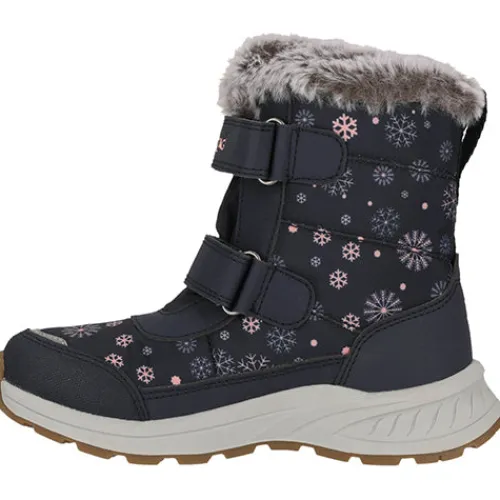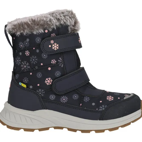 Dejlig og vandtæt Aray Kids Boot WP støvle med en vandafvisende overdel af fluorfri Bionic-Finish® Eco-behandlet tekstil og syntet med refleksdetaljer på snuden for øget synlighed. Støvlen lukkes med to velcroremme, og en trækfane bagpå gør det nemt at træde i støvlen. Indvendig har støvlen et let, lunt foer og et blødt plysfoer i kraven og om åbningen, og sammen med en åndbar og vandtæt Dry Base-membran holdes fødderne lune og tørre. Den komfortable indersål kan tages ud, og den godt mønstrede gummiydersål er stødabsorberende med et godt fodfæste.