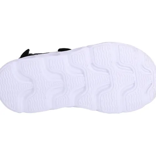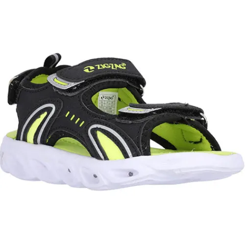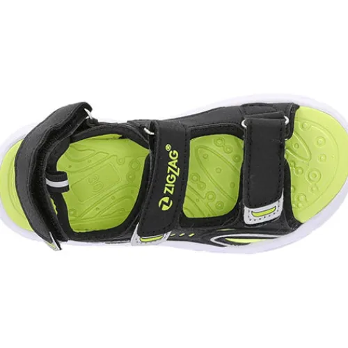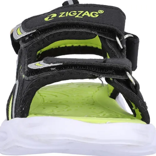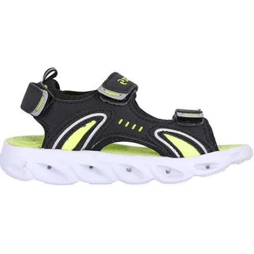 Sort sandal med 3 velcro remme, grønne detaljer, samt blink i forskellige farver i sålen.